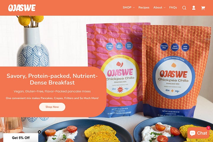 Ojaswe is a regenerative food company reimagining what it means to eat in a warming world. Their products—savory chickpea pancake mixes inspired by South Asian chilla—are deceptively simple, but the strategy behind them is anything but.